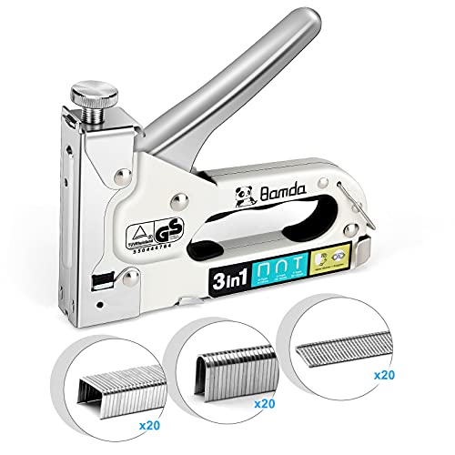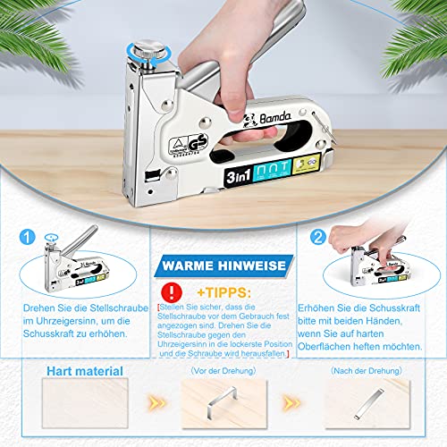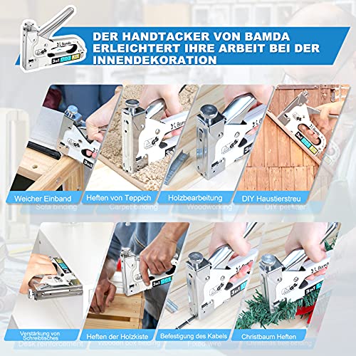 Bamda Handtacker, 3 In 1 Robuster Leistungsstarker Holztacker mit 3000 Klammern, Tackerpistole für Holz, Tischlerei, Dekoration, Kabelbefestigung