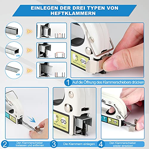 - 3-In-1-Anwendung: Der spezielle Schlitz ermöglicht das einfache Einsetzen von Klammern von Typ-D, Typ-U und Typ-T. Der 3-in-1-Handtacker ist perfekt für Reparaturen, Dekoration und Befestigung, um Ihre verschiedenen Heftanforderungen zu erfüllen.