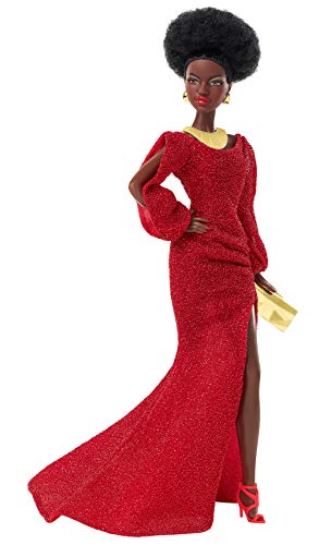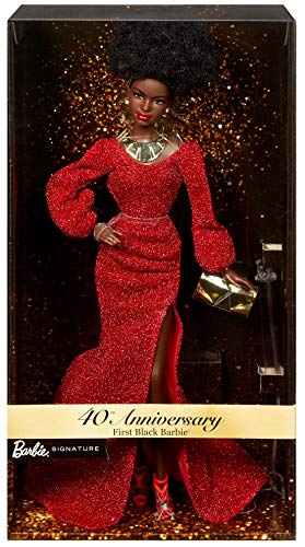 Barbie GLG35 – lalka Barbie Signature Black 40th Anniversary Lalka First Black Barbie, w czerwonej sukience ze stojakiem dla lalek i certyfikatem autentyczności