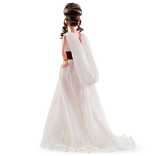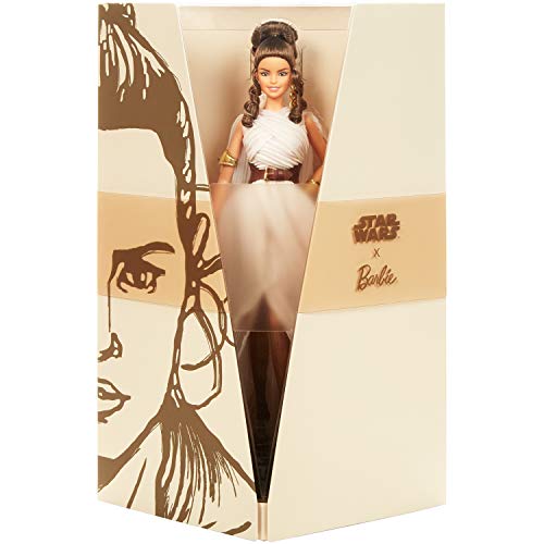 Zainspirowana oryginalną sztuką koncepcyjną filmów, kolekcja Star Wars x Barbie na nowo wyobraża sobie kultowe postacie dzięki charakterystycznemu filtrowi mody Barbie Ta współpraca z Gwiezdnymi Wojnami x Barbie jest hołdem dla Gwiezdnych Wojen i ulubionej przez fanów postaci Rey Lalka Star Wars Rey x Barbie oddaje legendarny wygląd Rey w kryształowej plisowanej szyfonowej sukni z dekoltem krzyżowym i drapowanym kapturem Legginsy i akcesoria ombre o młotkowanym złotym wyglądzie dopełniają jej bohaterski wygląd Lalka Star Wars Rey x Barbie to świetny prezent dla fanów i kolekcjonerów. Zawiera stojak na lalki z Gwiezdnych Wojen i certyfikat autentyczności