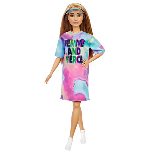Mattel – Barbie Fashionista, Petite with Light Brown Hair Wearing Tie-Dye T-Shirt Dress