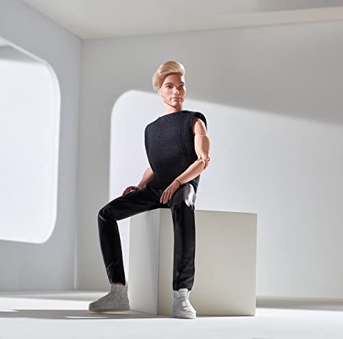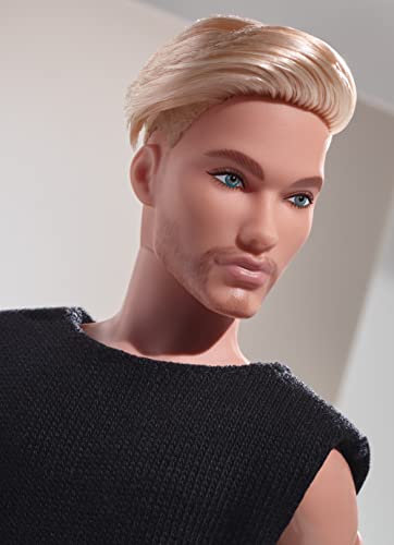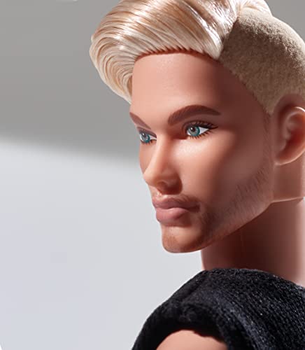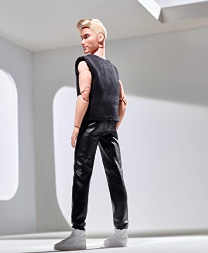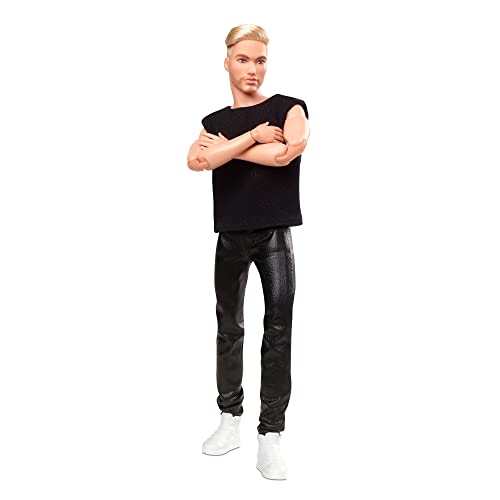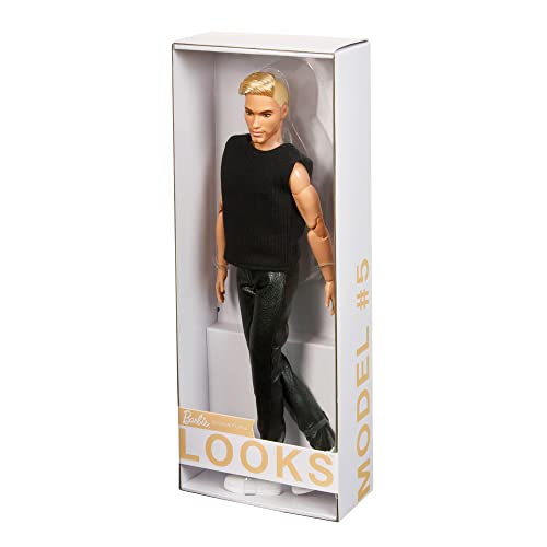 Barbie GTD90 Signature Looks Ken Doll (Blonde with Facial Hair) Fully Posable Fashion Doll Wearing Black T-Shirt & Vinyl Pants, Gift for Collectors, Multicolor, 30.0 cm*5.0 cm*10.0 cm