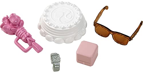 Można rozgrać bajkowy ślub z lalką Ken w bajkowym garniturze Lalka pana młodego marki Ken jest gotowa na wielki dzień w koszulce i muszkie, satynowa kurtka z butonierką, dopasowanymi spodniami i brązowymi butami Akcesoria obejmują tort ślubny, bukiet kwiatów, zegarek, okulary przeciwsłoneczne i pudełko na pierścionek