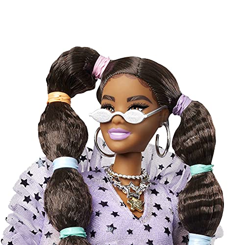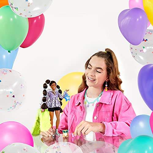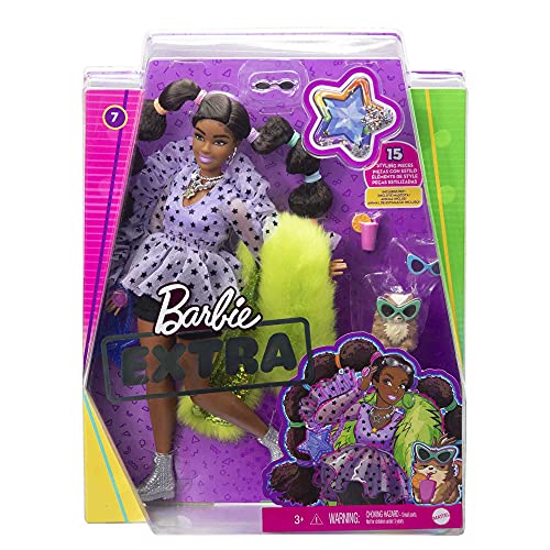Barbie GXF10 – Extra lalka #7 z topem i futrzaną pelerynką z pieskiem krasnalem dla dzieci od 3 lat