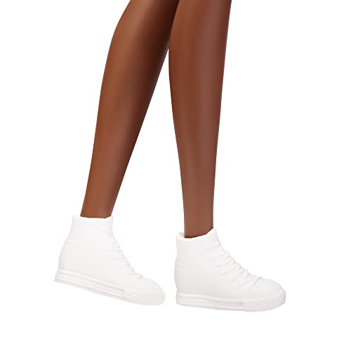 Barbie Fashionistas Lalka #180 (wysoka) z blond afro, kolorowym kombinezonem, bucikami sportowymi i żółtą bransoletką, zabawka dla dzieci w wieku od 3