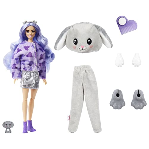 Dzięki 10 niespodziankom rozpakowywanie zestawów Barbie Cutie Reveal zapewnia mnóstwo radości W opakowaniu znajdziesz lalkę Barbie w kostiumie mięciutkiego kotka Zdejmij kostium, aby odkryć lalkę Barbie z punktami zgięcia, długimi kolorowymi włosami i lśniącymi dekoracjami na twarzy Otwórz 4 torebki-niespodzianki, aby znaleźć ubranko i akcesoria Przebieraj lalkę Barbie i dobieraj akcesoria