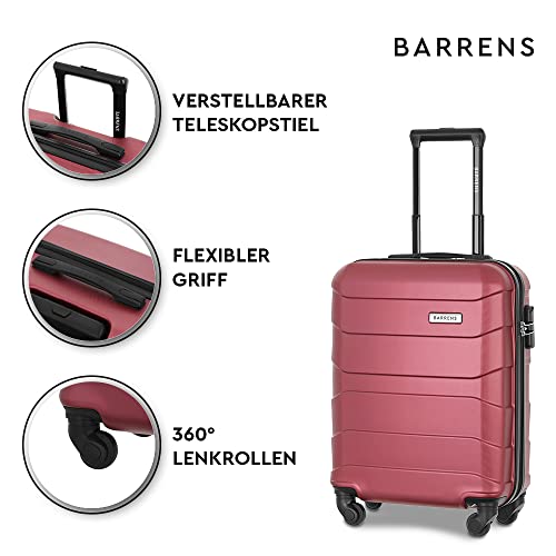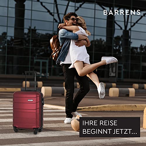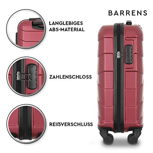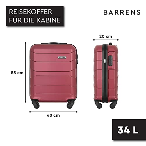 BARRENS Walizka podróżna kabinowa | Bagaż kabinowy, podręczny | Wymiary 55x40x20cm | Pojemność 34 L | Wytrzymały materiał ABS | Zamek szyfrowy | Elastyczna rączka | Kółka 360 stopni | Kolor burgundowy