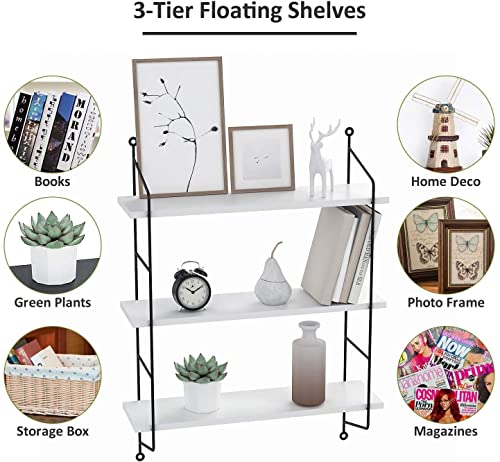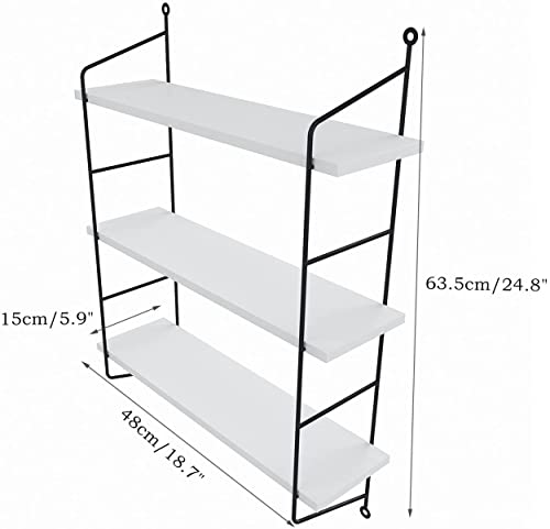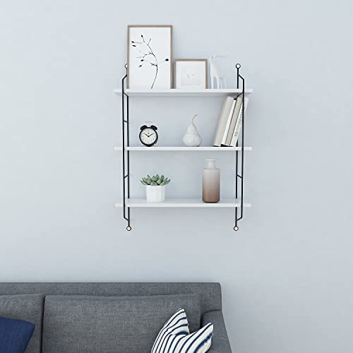 3 poziomy, pływająca półka, montowana na ścianie półka przemysłowa, drewniana półka ekspozycyjna, DIY otwarta półka do pokoju/kuchni/biura/łazienki, biała