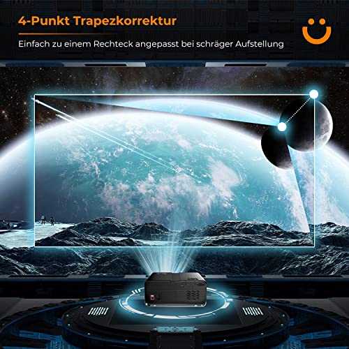 Beamer, YABER 8500 Lumen WiFi Bluetooth Beamer 1080P Full HD Beamer, z 4-punktową korekcją trapezu, wyświetlacz 4K 300 ” Przenośny Beamer LCD LED Video Home Cinema Beamer dla iOS / Android / Projektor Firestick