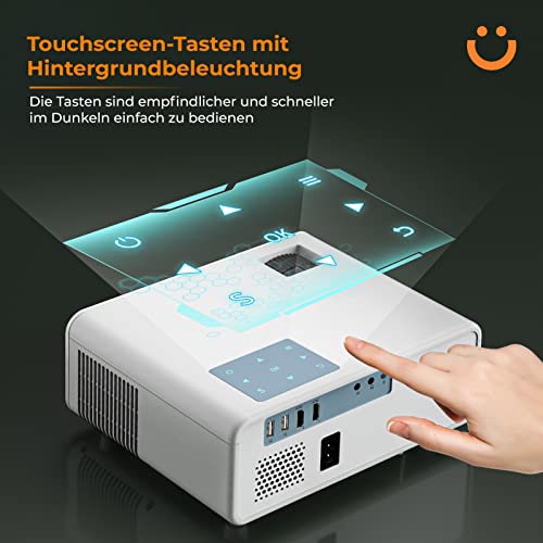 • Projektor Ultra HD 4K, innowacyjne podświetlane przyciski dotykowe: Dzięki rozdzielczości natywnej 1920 x 1080p, wysokiej jasności 9800 lumenów i współczynnikowi kontrastu do 15000:1 projektor Y9 zapewnia ostre i szczegółowe zdjęcia HD. Projektor kina domowego jest wyposażony w podświetlane przyciski dotykowe, które umożliwiają wygodną obsługę również w ciemności. Intymne wyposażone w ścianę projekcyjną. W celu ułatwienia transportu w zakres dostawy wchodzi torba.