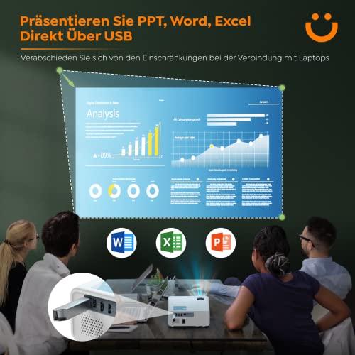 • 【Komfortowe połączenie multimedialne i prezentacja PPT-】 Ten projektor WiFi Bluetooth umożliwia odczyt PPT, PDF, Excel, Word i innych plików bezpośrednio z napędu flash USB, bez użycia komputera lub laptopa. Dzięki portom wejściowym, takim jak HDMI, złącze AV, VGA, audio, karta TF można bez problemu uzyskać dostęp do Roku Stick, Fire-TV, Chromecast, zewnętrznych głośników, laptopów/PC, odtwarzaczy DVD. Projektor Pro Y9 Full HD zarówno lokalne jak i online.