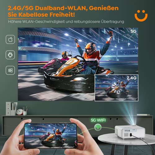 YABER projektor Full HD 1080p Native, 5G WiFi Bluetooth 9800 lumenów, obsługa 4K, 4P/4D, zoom 50%, projektor do kina domowego, projektor wideo LED do urządzeń iOS/Android/TV Stick/PS5