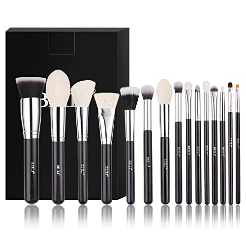 Pędzle do makijażu BEILI profesjonalny zestaw pędzli do makijażu naturalne włosy kozie premium syntetyczny podkład kabuki puder do twarzy korektor cieni do powiek mieszanie eyeliner zestaw pędzli do makijażu (czarny/srebrny)