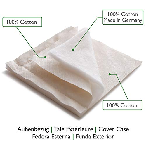 • Poszewka zewnętrzna i wewnętrzna z wysokiej jakości zamkami błyskawicznymi. Poszewki są wykonane z 100% tkaninę bawełnianą i wata ze 100% bawełny ekologicznej (80 g/m², Made in Germany) – posiadają certyfikat OEKO-TEX Standard 100.