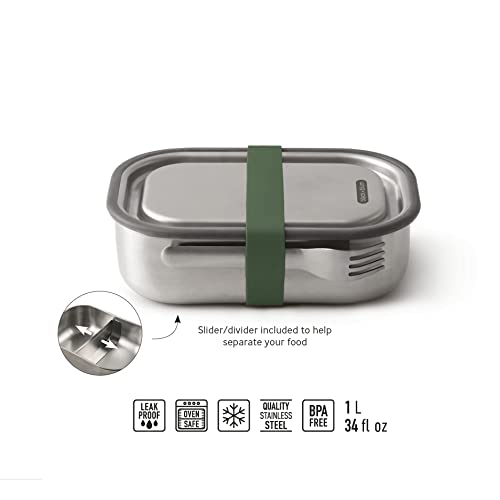 black+blum BAM-SS-L010 Olive 3-in-1 Lunchbox aus Edelstahl mit Vakuumverschluss-absolut auslaufsicher, inklusive Göffel, Silikon, 1000 ml