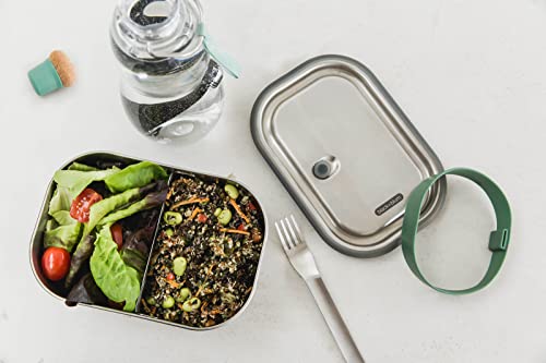 • PRAKTISCHES ZUBEHÖR: die Gabel aus Edelstahl wird durch das Silikonband sicher an der Lunchdose befestigt. Der verschiebbare Edelstahl Teiler ermöglicht das mühelose Trennen der Lebensmittel.