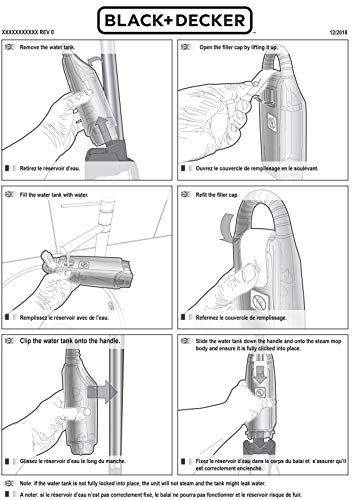 Black+Decker Dampfreiniger Steam Mop Deluxe FSM1630 – Stehender Dampf Mop für versiegelte Hartböden – Bodenreinigung mit waschbarem Microfaser-Pad – 180° drehbarer, herausnehmbarer Fuß – 1600W