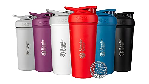 BlenderBottle Strada – Edelstahl Trinkflasche, Thermoflasche mit BlenderBall, Protein Shaker und Fitness Shaker, BPA frei, Doppelwandig, Vakuum isoliert – schwarz, 375 g