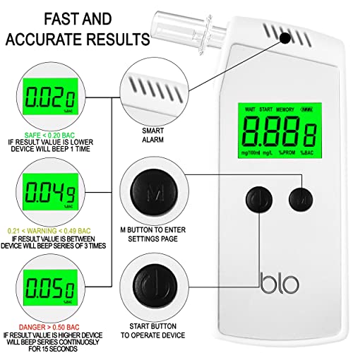• Wizualne Wyniki i Ostrzeżenia Dźwiękowe – Ten alkomat, oprócz tego, że jest kompaktowy i przenośny do samochodu lub w podróży, posiada łatwy do odczytania ekran cyfrowy dla wizualnych ostrzeżeń i alarmów dźwiękowych, które dają znać, gdy przekroczysz limit prawny.