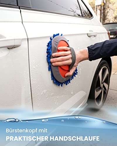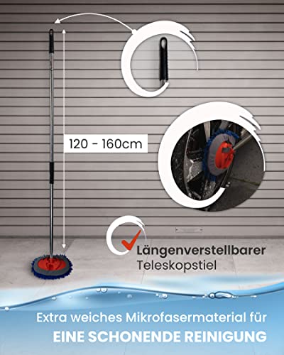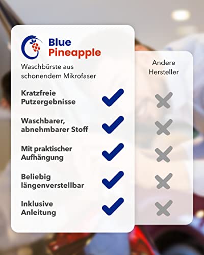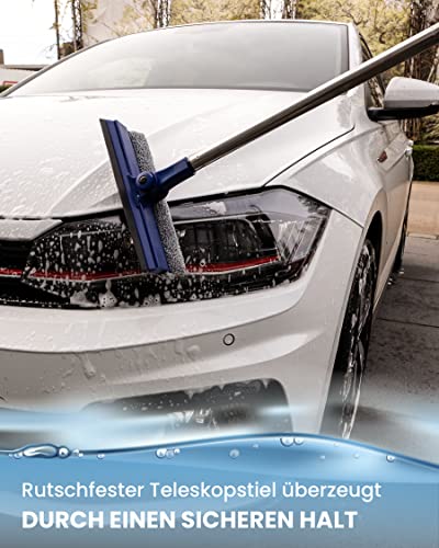 BLUE PINEAPPLE Szczotka do mycia samochodu z teleskopowym trzonkiem i ściągaczem do okien – delikatne profesjonalne czyszczenie – myjka – szczotka z mikrofibry – pielęgnacja samochodu