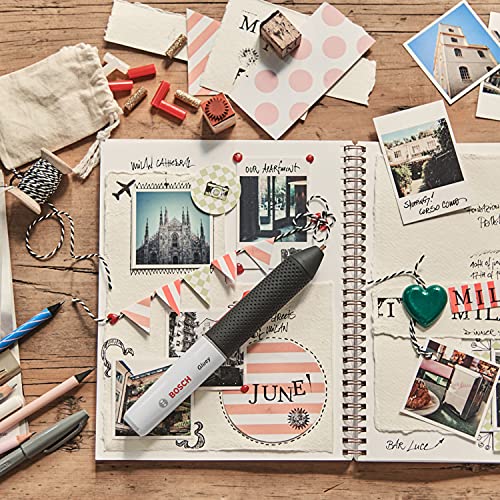 Bosch Akku Heißklebestift Gluey Smoky Grey (mit 20 Klebesticks, im Karton) grau