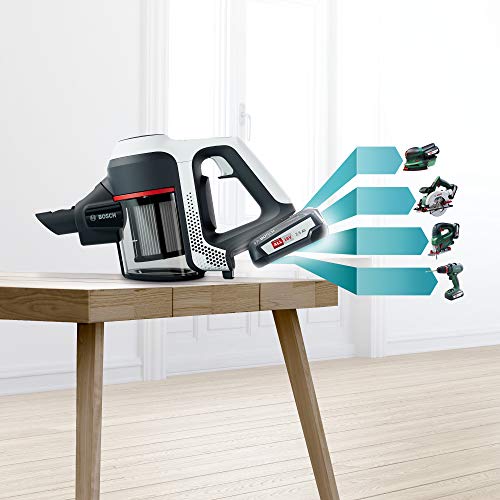 Bosch Unlimited Serie 6 BCS611AM, bezprzewodowy odkurzacz ręczny, bezworkowy, lekki, higieniczny filtr, wysoka moc ssania, długi czas pracy, ssawka szczelinowa, wszystkie rodzaje podłóg, biały