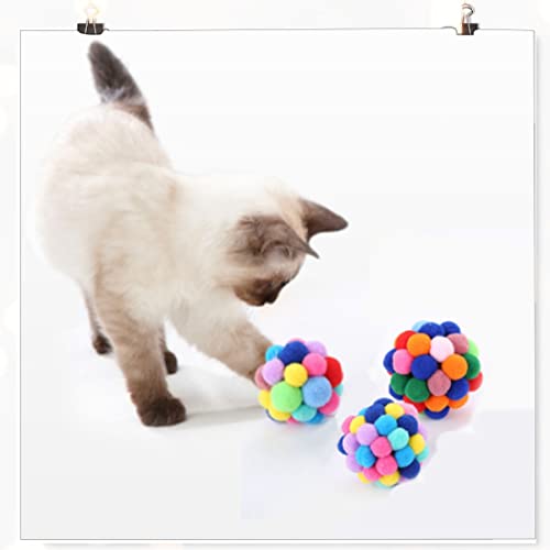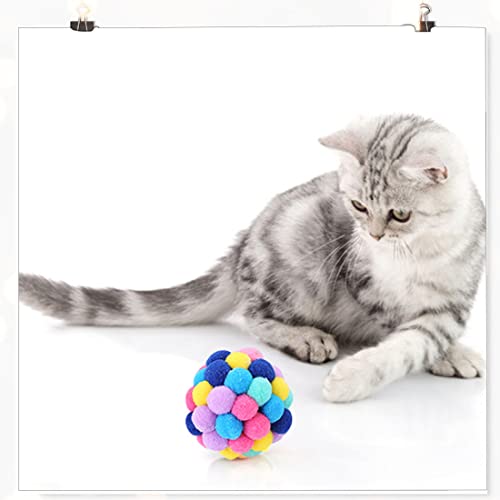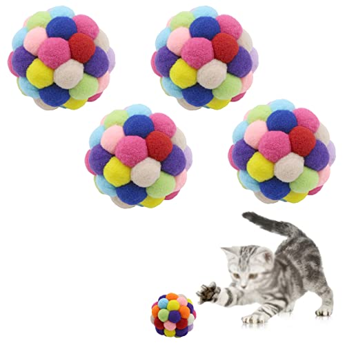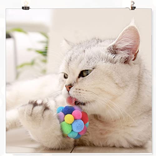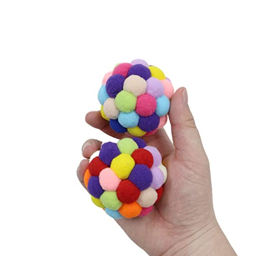 Kolorowa zabawka dla kota Bell kot Pompon – z piórami Bell Elastyczny, puszysty pluszowy Pompon Kule Puszyste kulki dla wszystkich psów Kitty Chomik Papuga Dzwonek Ptak 6,5 cm 4 sztuki