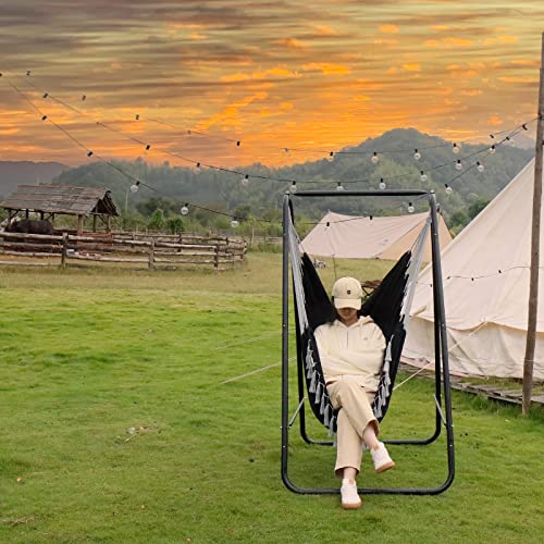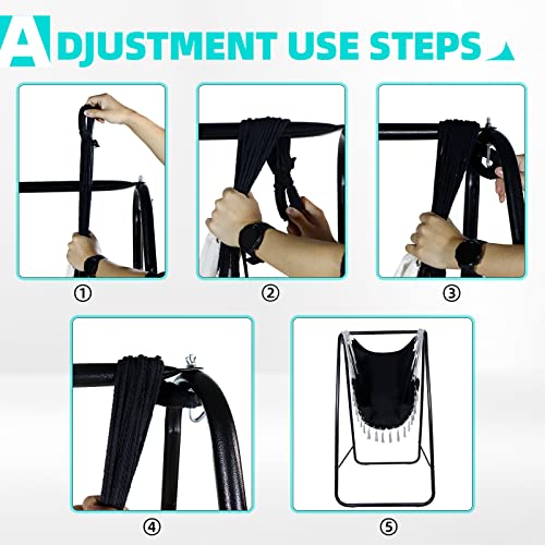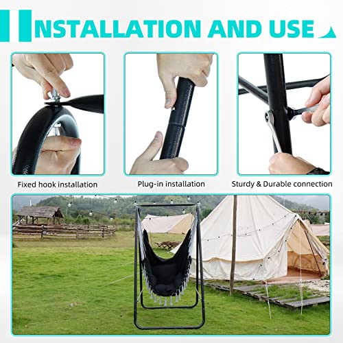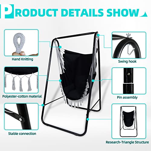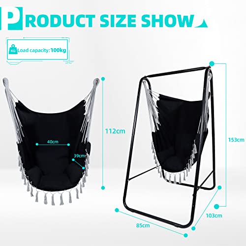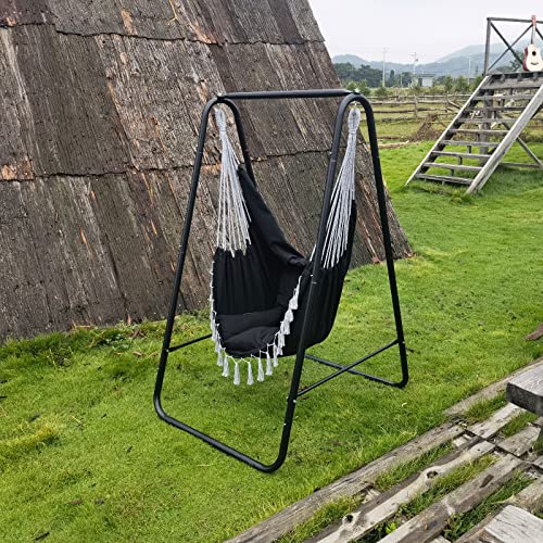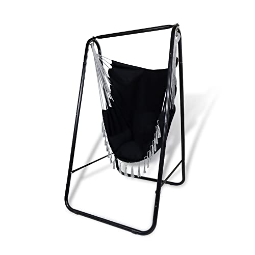 CCLIFE Wiszące krzesło z ramą i 3 poduszkami Wisząca huśtawka Wiszące krzesło do 100 kg Wiszące siedzisko ogrodowe do użytku wewnętrznego i zewnętrznego Beżowy 85x103x153cm, Color:Czarny