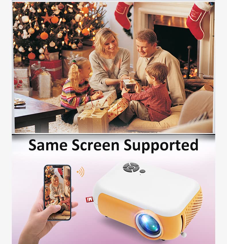 • Technologia synchronizacji ekranu WiFi – bezprzewodowy ręczny projektor dopasowuje najnowszą technologię synchronizacji ekranu Wi-Fi do smartfonów, aby łatwo połączyć urządzenie z systemem iOS / Android poprzez podłączenie do sieci Wi-Fi. Nawet jeśli projektor domowy jest zawieszony na suficie, bezprzewodowy projektor zapewni Ci swobodę.