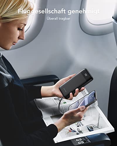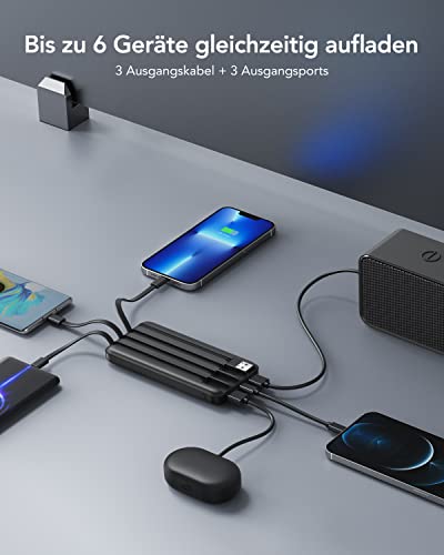 Charmast Powerbank 10 000 mAh, zewnętrzny akumulator USB C Power Bank z 4 wbudowanymi kablami do ładowania, przenośna ładowarka, wyświetlacz LED, kompaktowy Slim 6 wyjść, kompatybilny z iPhone, Huawei, Samsung Tablet