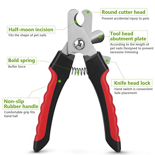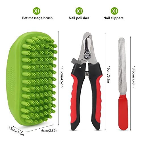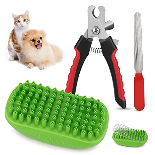 ChuerTech Nożyce do pazurów dla psów i kotów z pilnikiem do paznokci, szczotka do sierści psów/kotów z efektem masażu, wysoka jakość, obcinacz do paznokci dla zwierząt domowych, duży z ochroną bezpieczeństwa