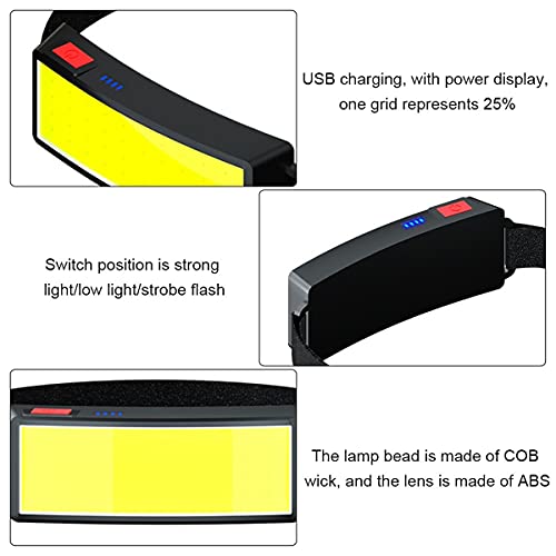 COB latarka czołowa, super jasna, 1000 lumenów COB LED latarka czołowa z 3 trybami, szerokokątne oświetlenie 210°, lekka, wodoodporna latarka czołowa do użytku na świeżym powietrzu, na kemping, do naprawy samochodu, na ryby