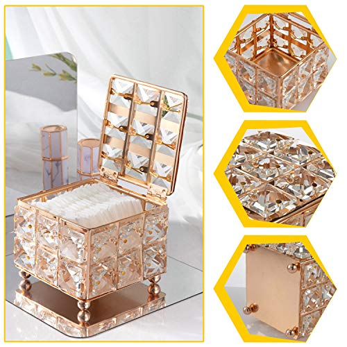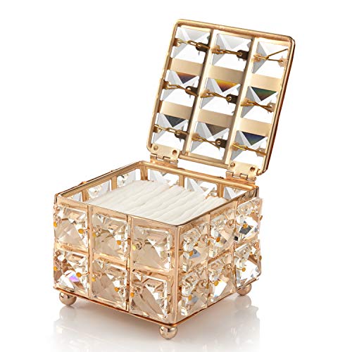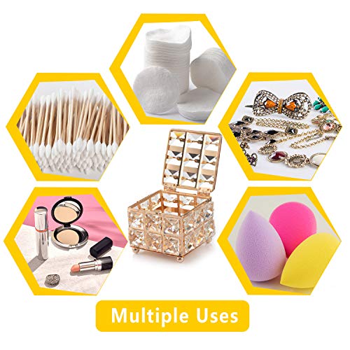 Comius Sharp Kryształowy pojemnik do przechowywania kosmetyków, małe pudełko kosmetyczne z pokrywką, do dozownika wacików i uchwytów na pałeczki higieniczne, kwadratowe pudełko do przechowywania makijażu z wzorem w romby (złoty)