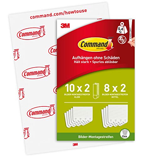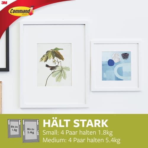 Command Zestaw pasków do zawieszania obrazów, bez uszkodzeń, wiszące wieszaki na obrazy, bez narzędzi, paski ścienne do pomieszczeń mieszkalnych, białe, 10 małych par i 8 średnich par (36 pasków)