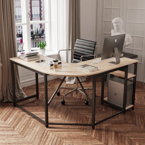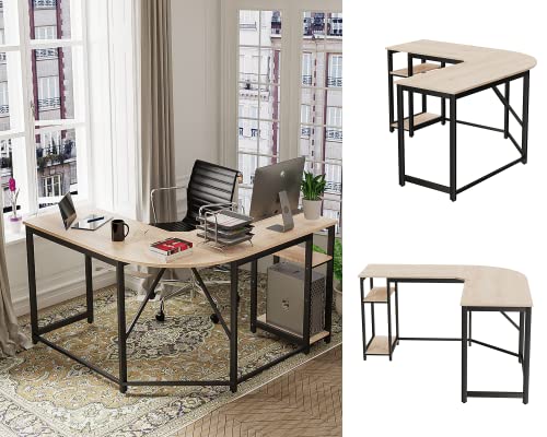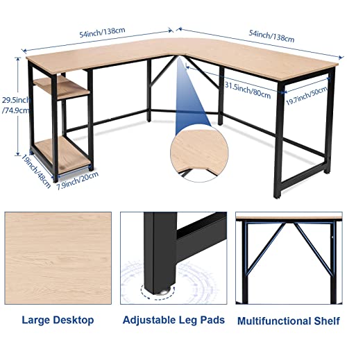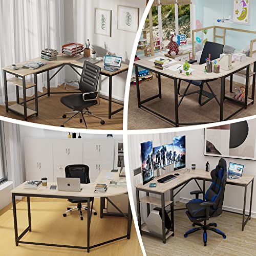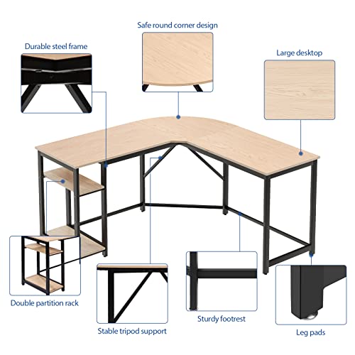 Biurko komputerowe w kształcie litery L, biurko do gier, narożne z 2 półkami, wzornictwo przemysłowe, duża przestrzeń (138 x 138 x 75 cm)
