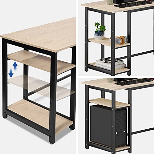• Zmaksymalizuj swoje miejsce: przestronny blat stołu w kształcie litery L, powierzchnia robocza na 3-5 monitorów. Dużo miejsca pod biurkiem narożnym zapewnia swobodę nóg. Dwie regulowane półki zapewniają ponadto wystarczająco dużo miejsca do przechowywania procesora lub książek itp. Stanowią idealną stację roboczą do pracy lub na studia i maksymalizują miejsce.