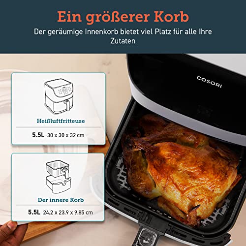 COSORI Frytkownica na gorące powietrze 5,5 l XXL, frytkownica na gorące powietrze, z cyfrowym ekranem dotykowym LED, 11 programów