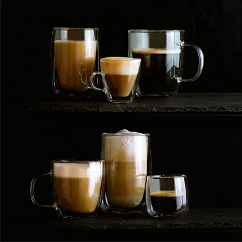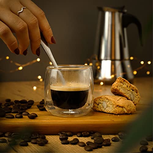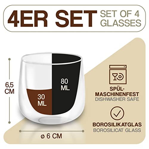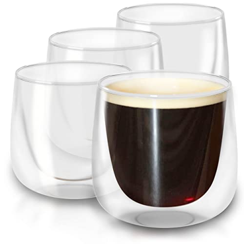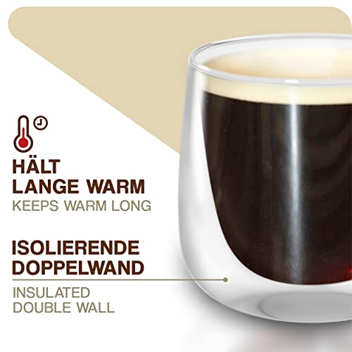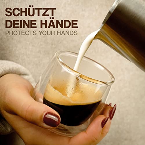 • ☕ COOL FLOATING EFFECT: Podwójna warstwa szkła w szklankach sprawia, że płyn wydaje się unosić w powietrzu i dlatego szczególnie nadaje się do cremy, affogato lub espresso z kremem.
