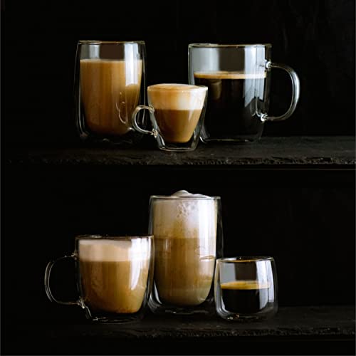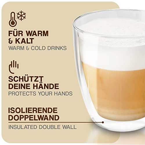 • ☕ COOL FLOATING EFFECT: Podwójna warstwa szkła w szklankach sprawia, że płyn wydaje się unosić w powietrzu, dlatego szczególnie nadaje się do warstwowych drinków lub deserów.
