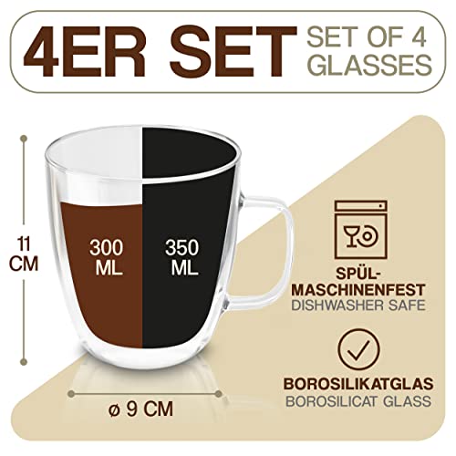 4 Szklanki termiczne Double Walled Latte Macchiato 350ml – dłużej utrzymują temperaturę – chronią dłonie – z pudełkiem prezentowym