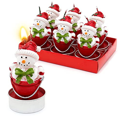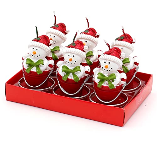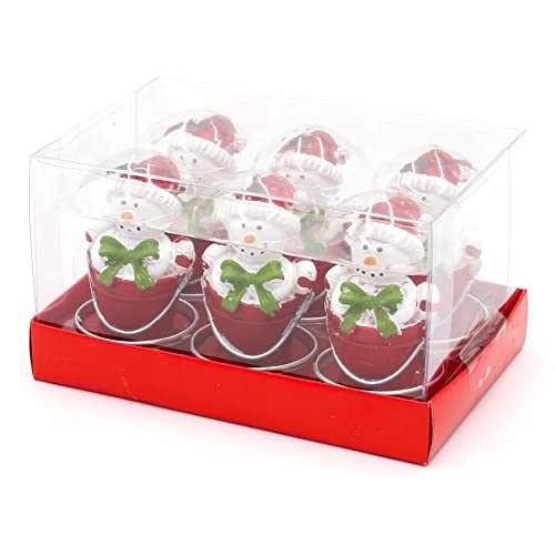 Dekohelden24 6-częściowy zestaw bałwanków w wiaderku, wymiary świeczki typu tealight dł./szer./wys.: 4 x 4 x 7 cm, 7 cm