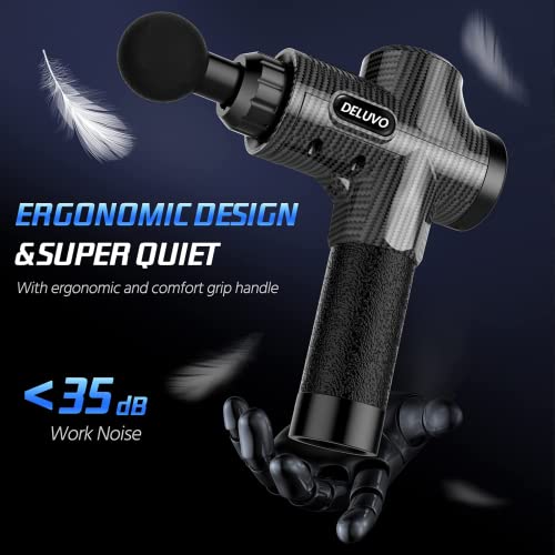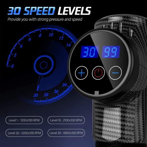 Pistolet do masażu, urządzenie do masażu, elektryczny pistolet Deluxo, 30 prędkości, 6 głowic do masażu, ekran dotykowy LCD, pistolet do masażu (włókno węglowe)