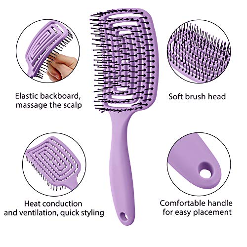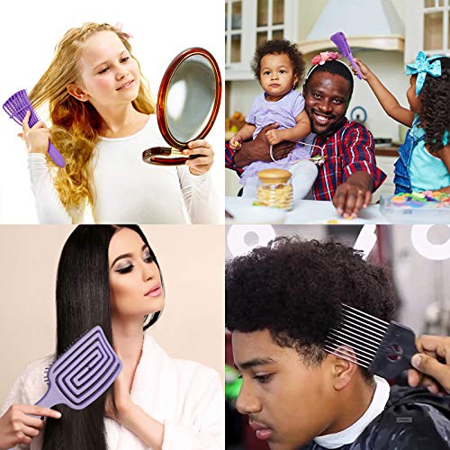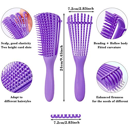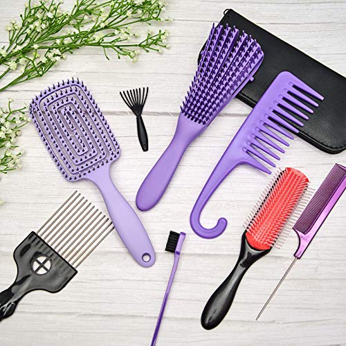 Zestaw 8 szczotek do rozczesywania włosów, 9-rzędowa poduszka nylonowa, szczotka do szamponu, wentylowana szczotka do stylizacji, grzebień do masażu, grzebienie do włosów do oddzielania, kształtowania i definiowania loków, mokrych/suchych włosów afro (fioletowy)