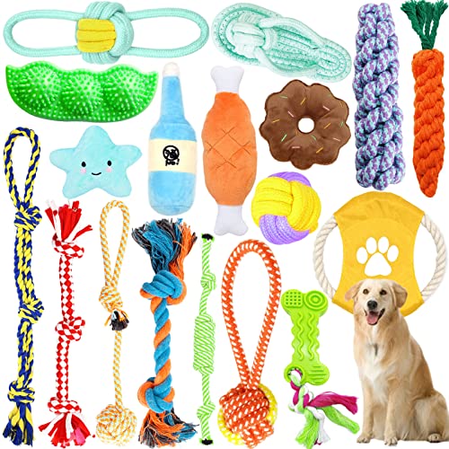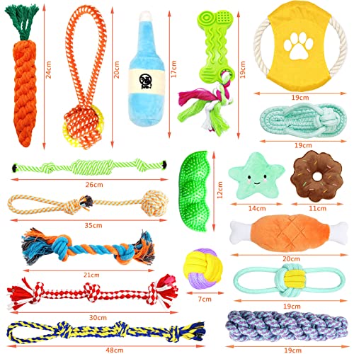 DIDUDE Zestaw 18 zabawek dla psów, wyprodukowane z naturalnej bawełny, nietoksyczne i bezzapachowe, niezniszczalna zabawka do żucia, zestaw zabawek dla małych/średnich psów