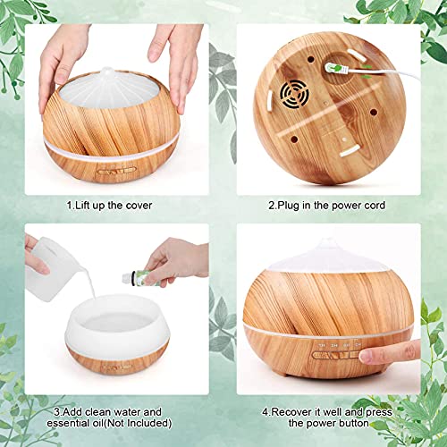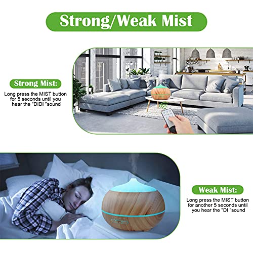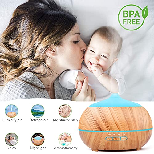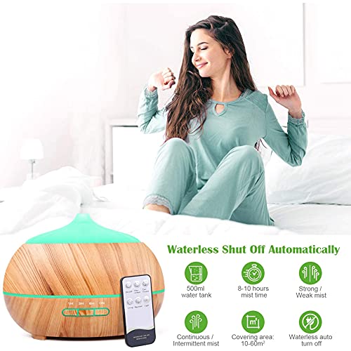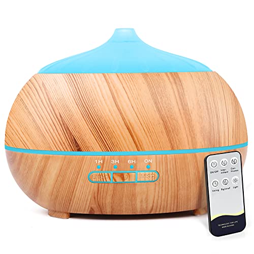 Dyfuzor ultradźwiękowy zapachowy nawilżacz powietrza: 500 ml dyfuzor olejków eterycznych z pilotem zdalnego sterowania – elektryczna lampa zapachowa drewno