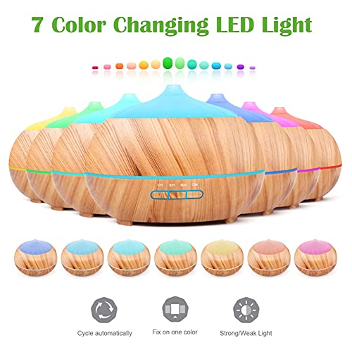 • 7 rodzajów światła i 2 tryby świecenia: ten dyfuzor do aromaterapii do olejków eterycznych jest wyposażony w 7 rodzajów diod LED. Barwa światła jest miękka, a zmiana jest uspokajająca, co może stworzyć przyjemną atmosferę świetlną. Dyfuzor zapachowy, który może być używany jako lampka nocna, jest wyposażony w 2 tryby światła: ciągła zmiana i stała stała. Można wybrać żądany tryb zgodnie z własnymi potrzebami.
