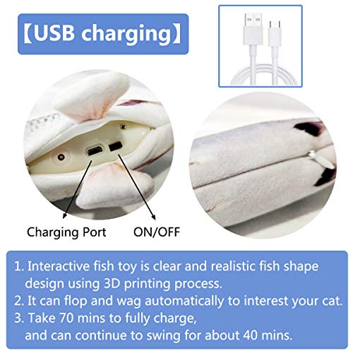 • 【Ładowanie USB】 Ta realistyczna zabawka symulująca ryby wygląda jak prawdziwa ryba. Można go ładować za pomocą kabla USB, aby można było go ponownie użyć. Ta żywa zabawka w kształcie ryby sprawi radość Twojemu kotu i prawdopodobnie sprawi, że Twój kot będzie mniej wychodził. Pełne ładowanie trwa 70 minut i można go dalej obracać przez około 40 minut.