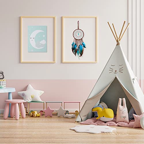 Dsaren Łapacz snów, ręcznie wykonany, łapacz snów, ozdoba na ścianę, ozdoba na baby shower, do samochodu, na wesele, jako dekoracja domu, prezent (niebieski)
