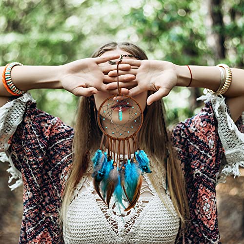 • Ręczna sztuczka: łapacz snów jest wykonany ręcznie. Jednolita i szczegółowa siatka, miękkie i nieskazitelne pióra oraz naturalne gładkie perły tworzą piękną dekorację ściany lub samochodu.