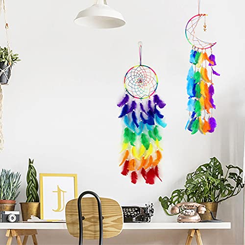 DUGYIRS 2 sztuki łapacz snów ręcznie robiony szydełkowany kolor pióra łapacze snów sztuka ścienna dekoracje wiszące do domu ozdoba prezenty świąteczne